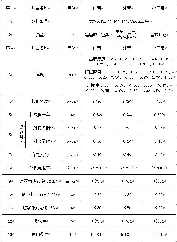 聚乙烯660型防腐膠帶經(jīng)國家專業(yè)檢測認(rèn)定,各項指標(biāo)大大高于SY/T0414-98標(biāo)準(zhǔn)要求,完全符合美國ANSI/AWWAC209-00和NACEMR0274-95指標(biāo),是目前防腐冷纏膠帶中經(jīng)濟、環(huán)保的產(chǎn)品,具有很高的推廣應(yīng)用價值。